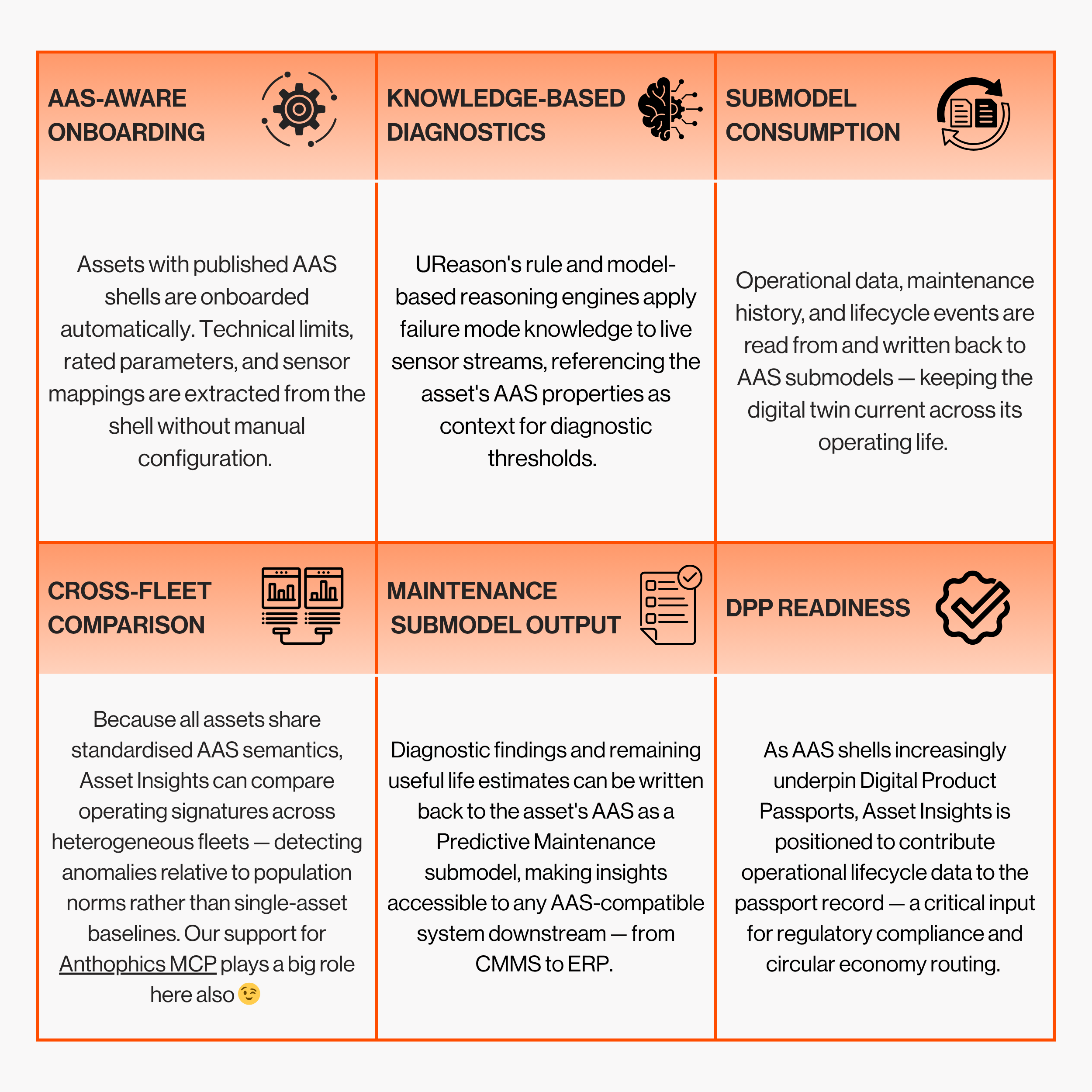 UReason has been working at the intersection of knowledge-based AI and industrial asset management for over two decades. Asset Insights represents the convergence of that domain expertise with the AAS ecosystem: rather than requiring custom integration for every asset type, the platform leverages the standardised submodel structure to understand asset properties, operating parameters, and failure modes automatically — without bespoke configuration for each manufacturer’s data format.