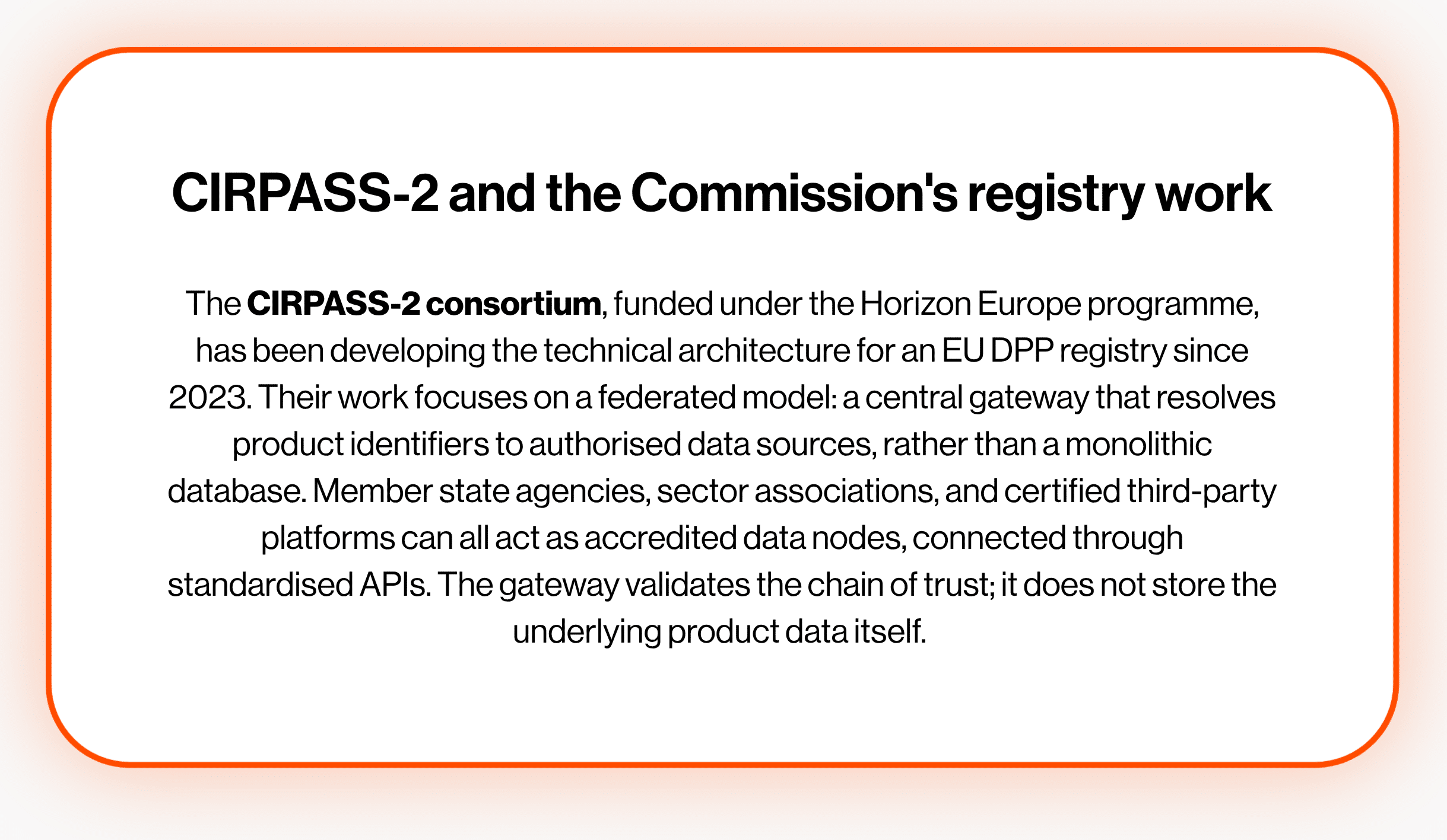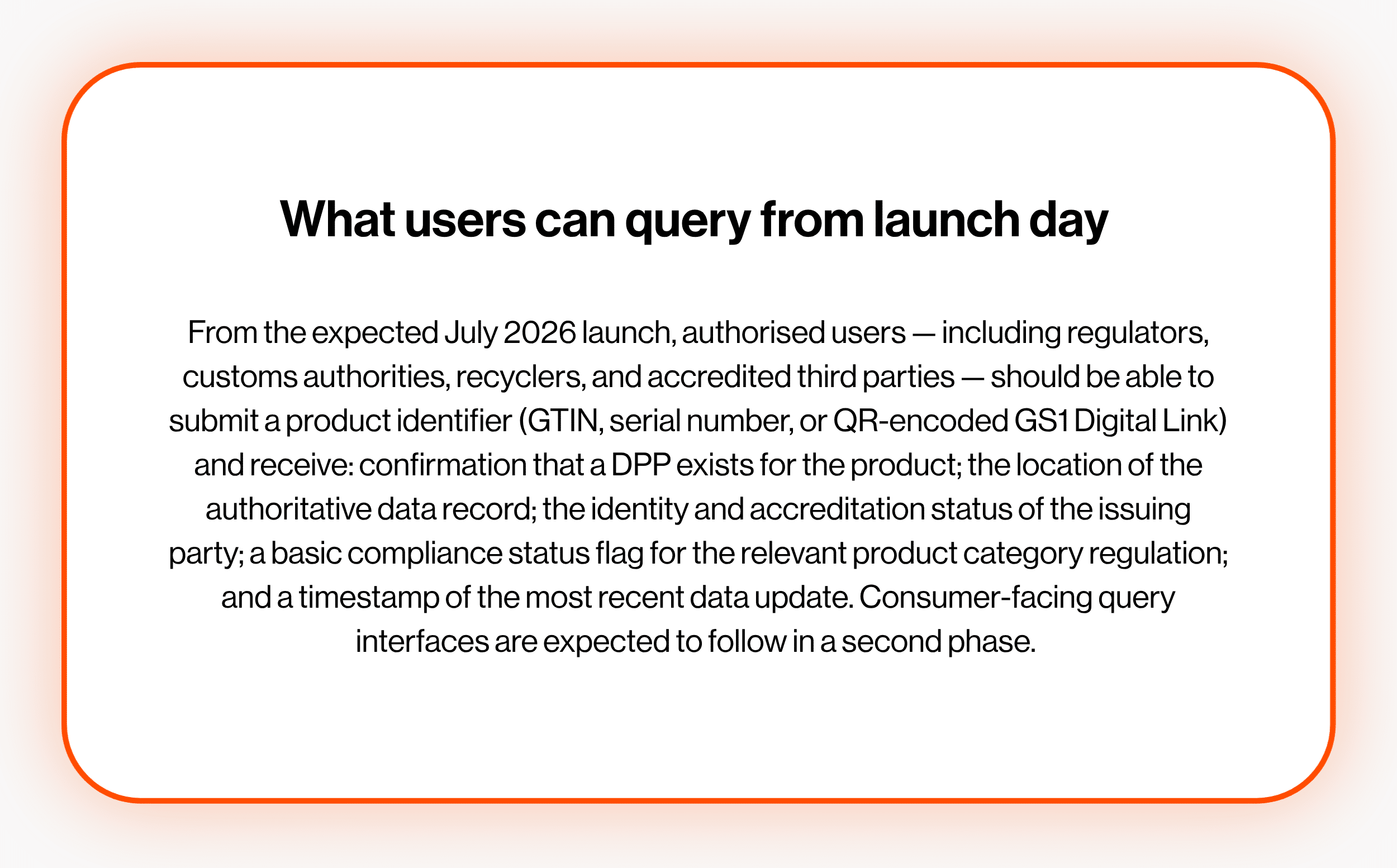 The existence of a central registry will not, on its own, make Digital Product Passports work. It is a necessary condition, not a sufficient one. The quality of data feeding into the registry, the breadth of enforcement action against non-compliant producers, the interoperability with trading partners outside the EU, and the accessibility of query interfaces to the full range of intended users — consumers, not just enterprises — are all equally important variables.